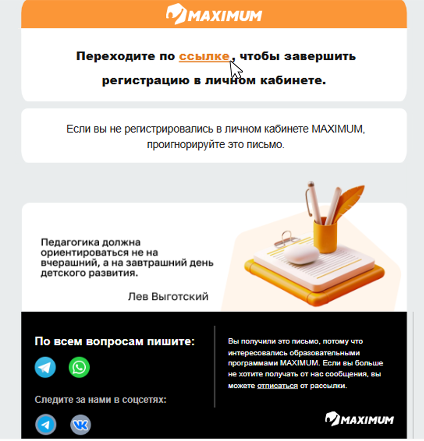Откройте письмо на своей электронной почте и перейдите по ссылке: