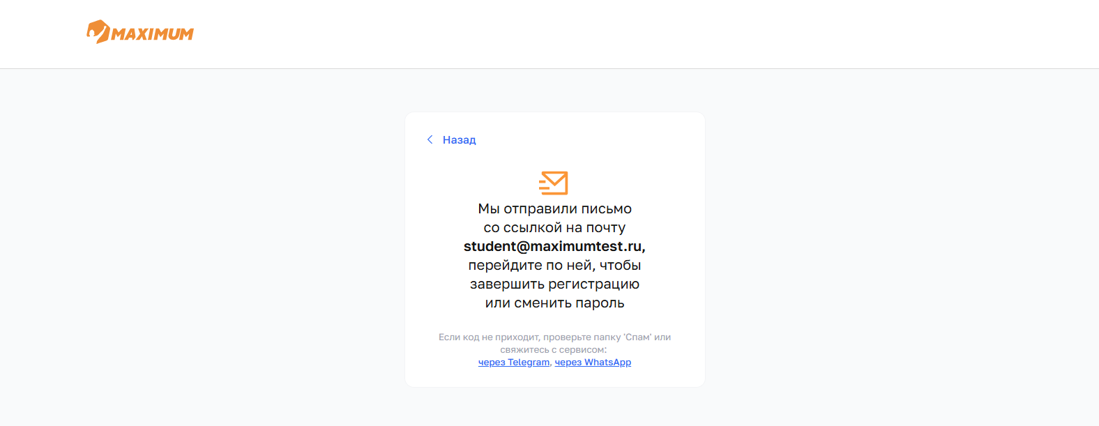Для регистрации в личном кабинете перейдите по ссылке: https://login.maximumtest.ru.