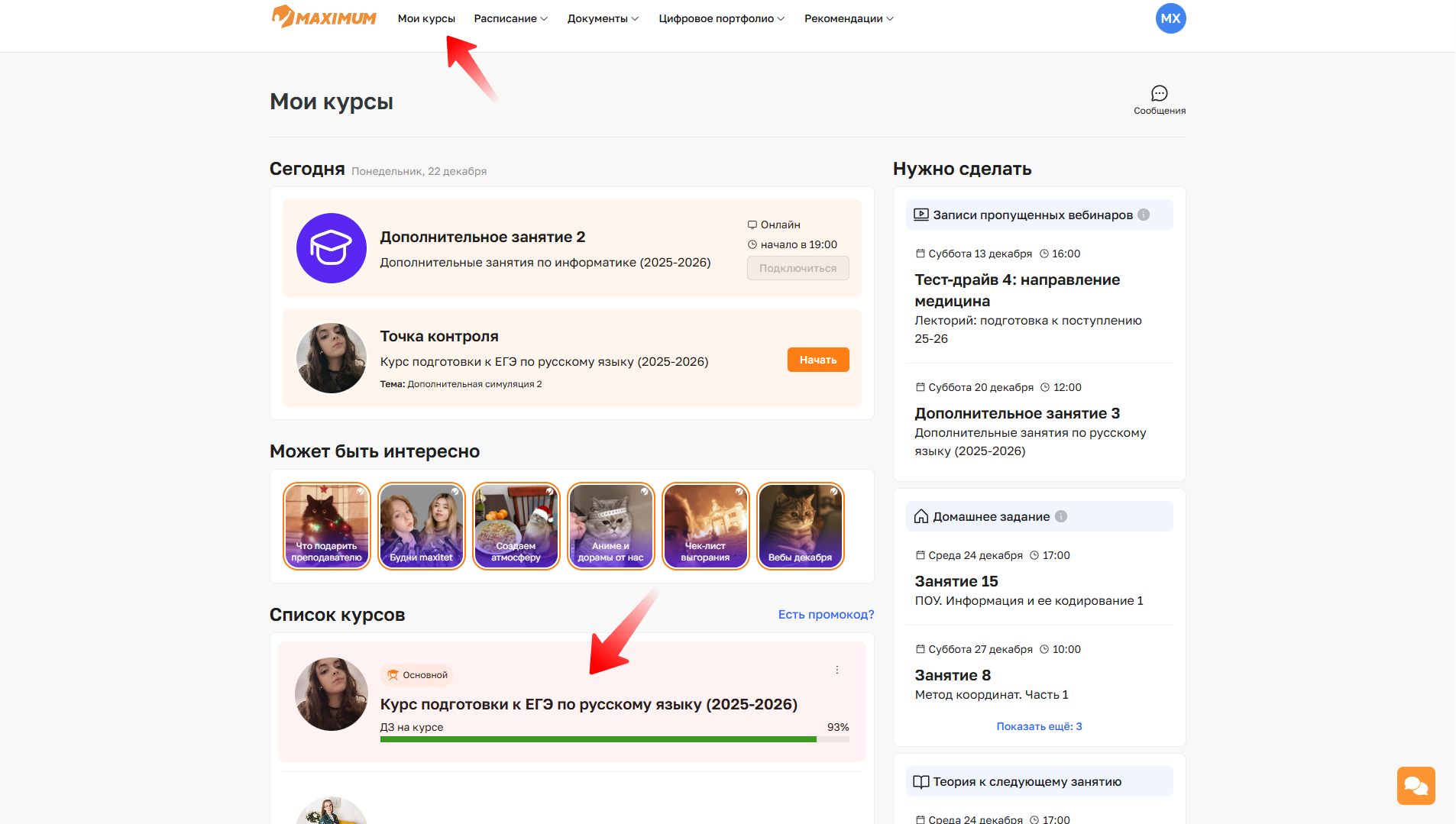 Ознакомиться с расписанием своих курсов можно в личном кабинете.