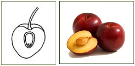 Костянка – односемянной плод с чётко различимыми слоями околоплодника: наружный слой плёнчатый; срединный – сочный, мясистый; внутренний деревянистый, образующий косточку (слива, вишня, черешня). Если в цветке несколько пестиков, развивается многокостянка (у ежевики, малины).