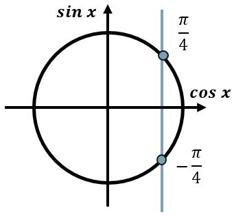 \({c\text{os}}x \geq \frac{\sqrt{2}}{2}\)