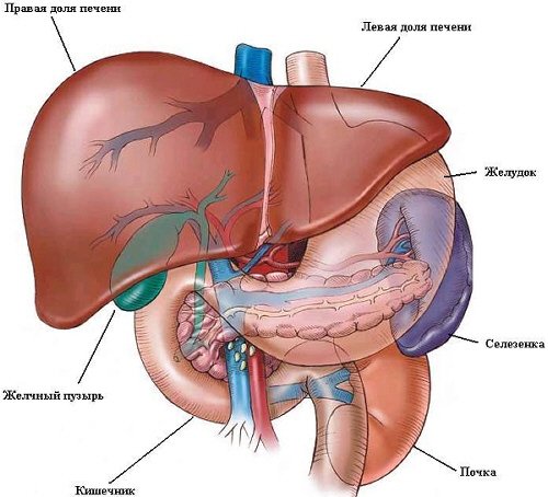 Печень - самая крупная железа организма. Вся кровь от желудка и кишечника попадает по воротной вене в печень, где происходит детоксикация и обеззараживание крови, преобразование продуктов обмена веществ белков, жиров и углеводов, синтезируются аминокислоты, многие белки крови и мочевина.