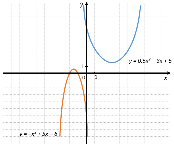 График \(y = \ –x^{2} + 3x + 5\) пересекает ось Оy в точке (0;5).