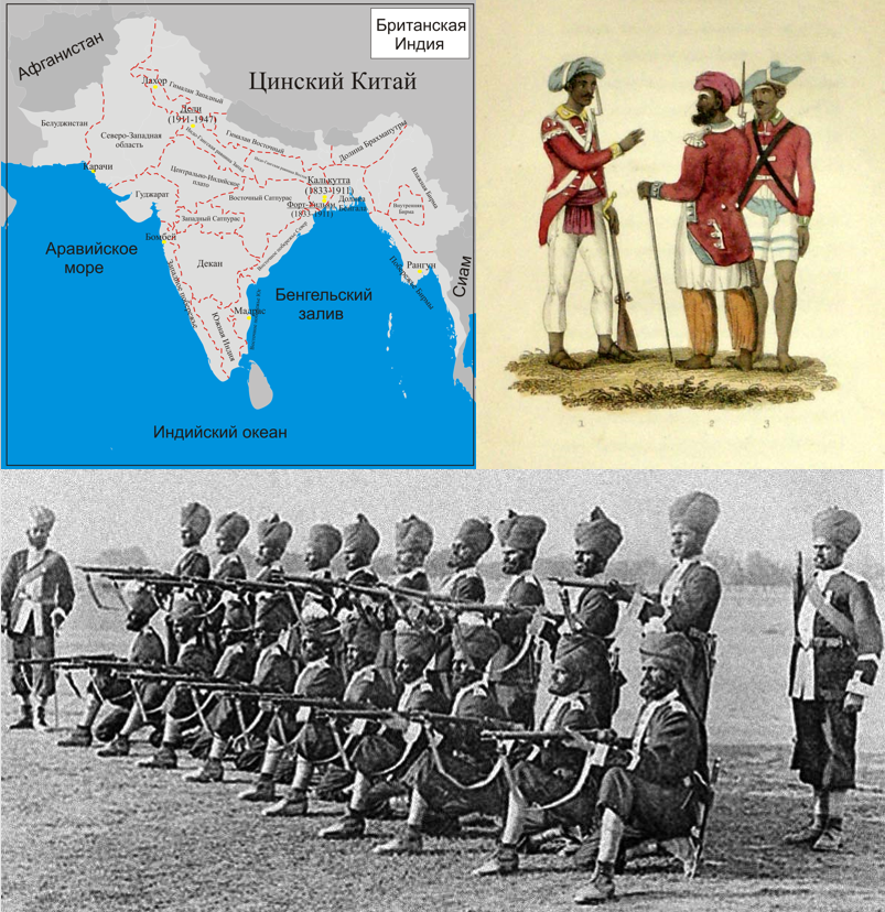 Британская Индия (сверху слева); сипаи